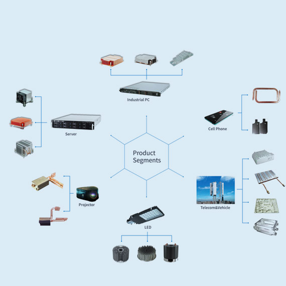 公司基于散熱行業,已涉足3C行業、服務器行業、通訊行業、車輛行業等